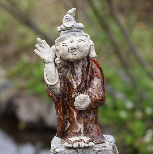 先生の泥仏さんにはいくつかのスタイルがある。小さなミニ仏さん、やさしい顔の如来様、怖い顔した鬼仏さん、そして素朴な表情を持つお地蔵様。